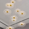 27 LIGHTS BALL FIREFLY GOLD CHANDELIER AMBER GLASS LED CEILING LIGHT HANGING LAMP – WARM WHITE