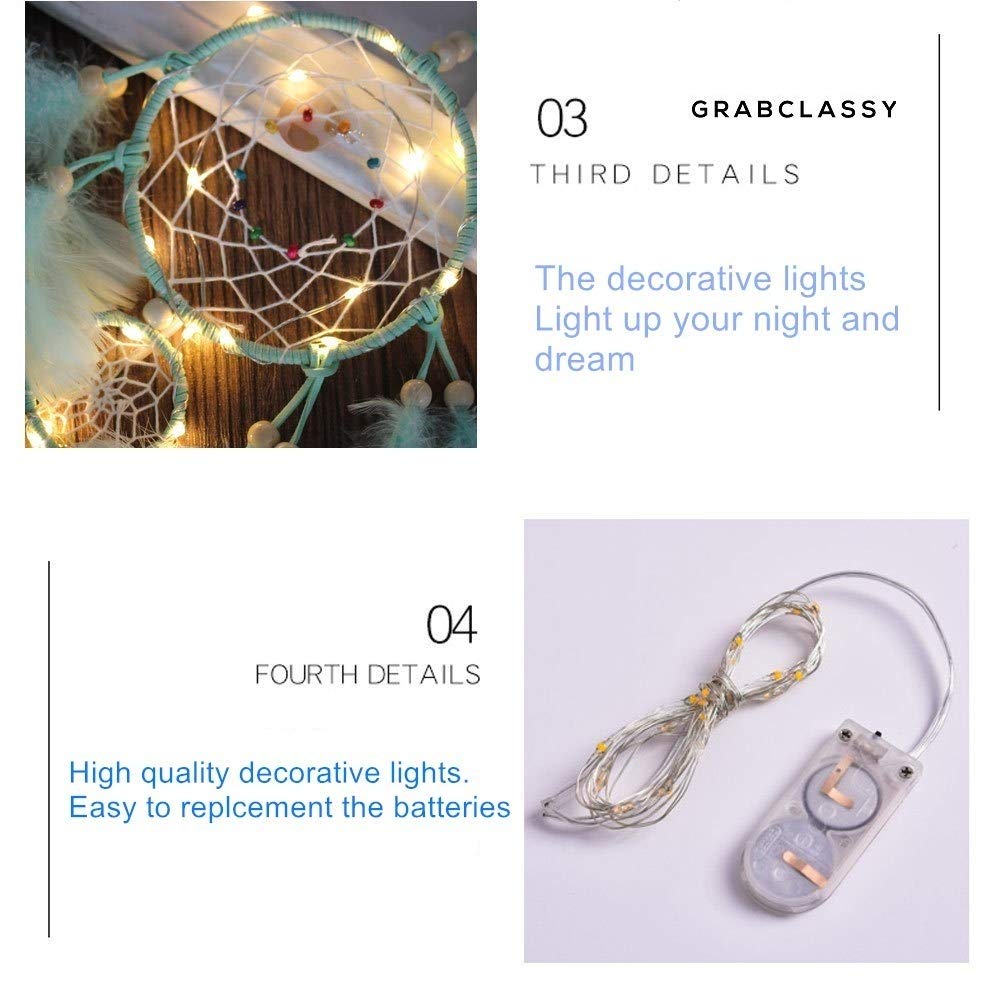 LIGHTS UP: Copper wire LED fairy lights (6.6ft, Warm White), including battery.These dreamcatchers are low consumption, high safety and battery powered,you can use them almost anywhere.